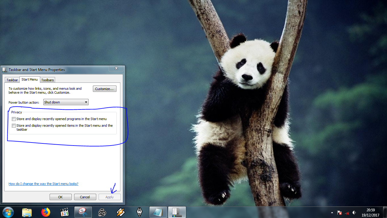 7. Hilangkan ceklis/centang pada Recent item yang saya tunjukan trus klik Ok dan tutup semua tab